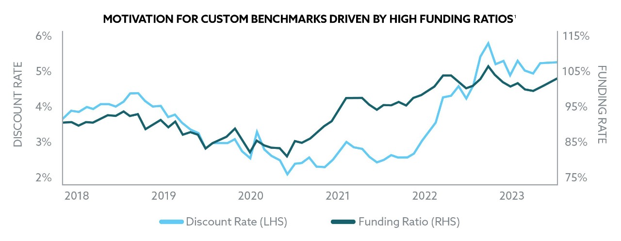 Rising discount rates led to an increase in pension funding ratios and we believe fixed income assets need to be better calibrated to liability profiles, which is when customization can be useful